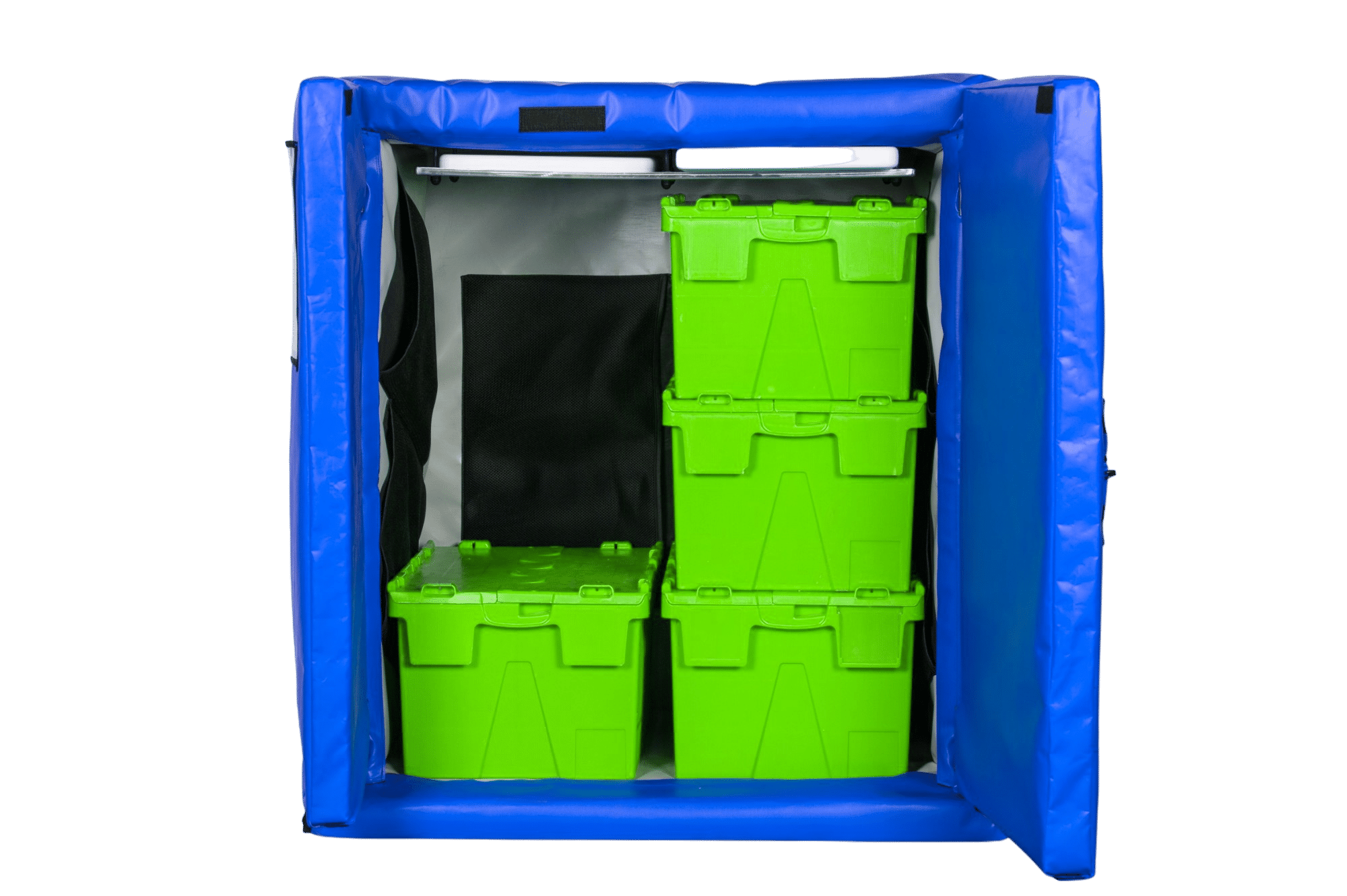 L’armoire isotherme réfrigérée CarryTemp XL6 a été conçue pour accueillir 6 caisses crocos, ces caisses de manutention logistiques de format au sol 600×400 mm et de hauteur 310 mm. Son volume interne total est de 600L.